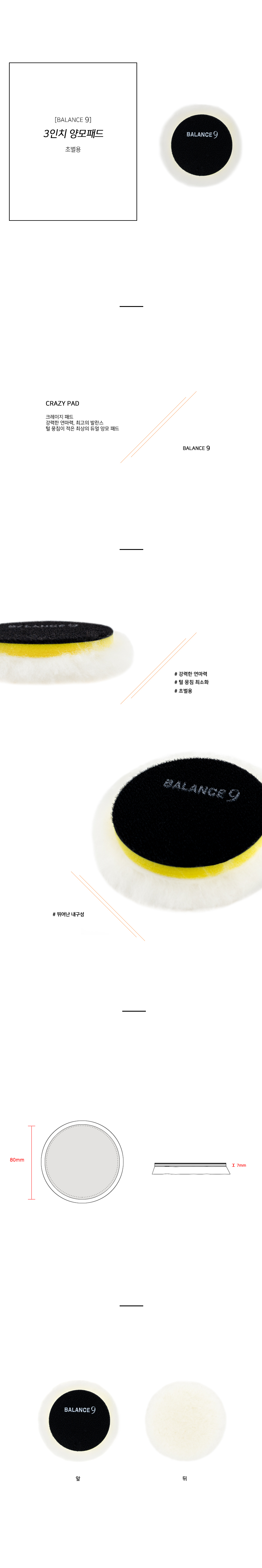 [발란스나인] 양모패드3인치(초벌) 3장묶음